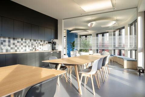 Leitgedanke des Projekts war: „Die Teams dazu befähigen, ihren Raum zu ‚hacken‘ – ohne Wenn und Aber“ Auf dieser Grundlage wurde eine unter Denkmalschutz stehende Bestandsfläche umgestaltet, um eine Arbeitsumgebung zu schaffen, die speziell auf Teams, Softwareentwicklung und Zusammenarbeit ausgerichtet ist.